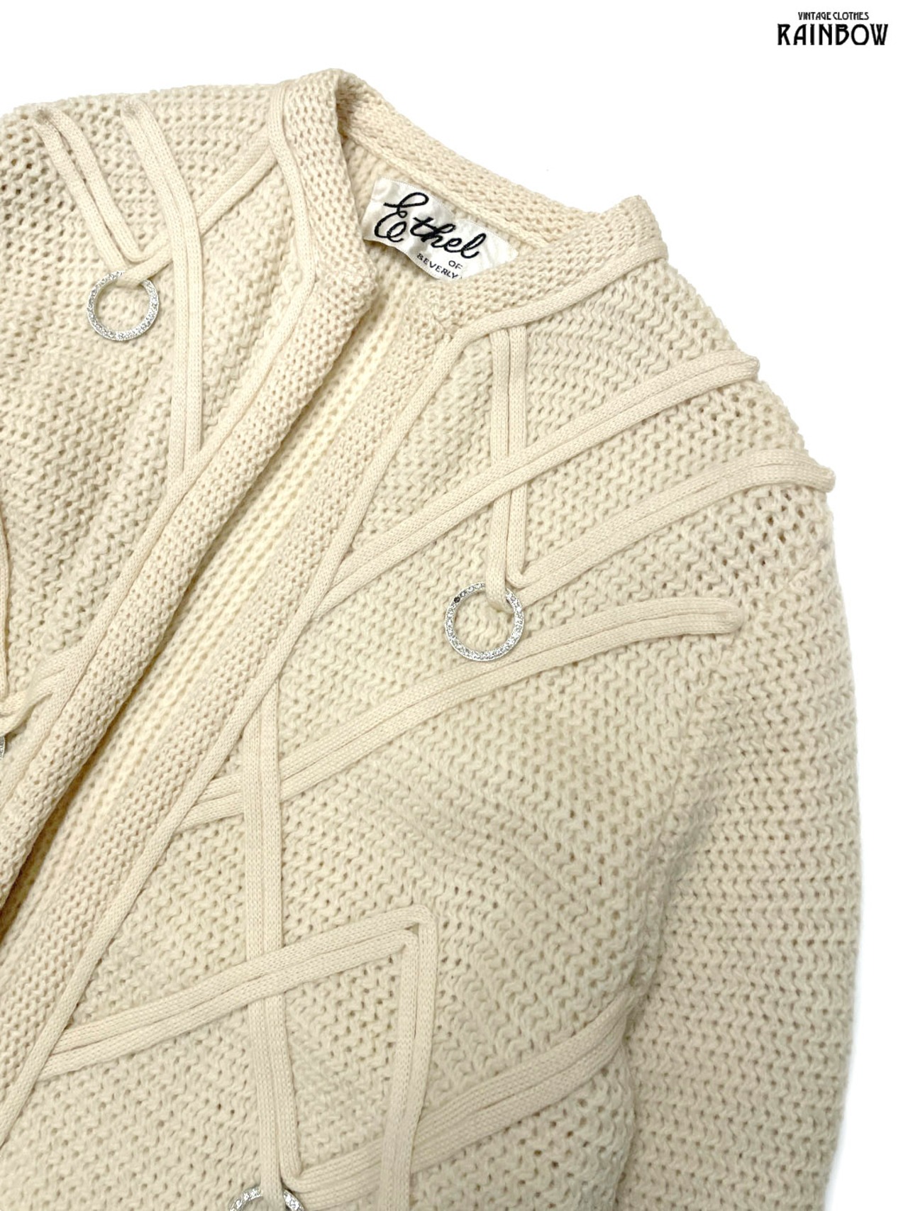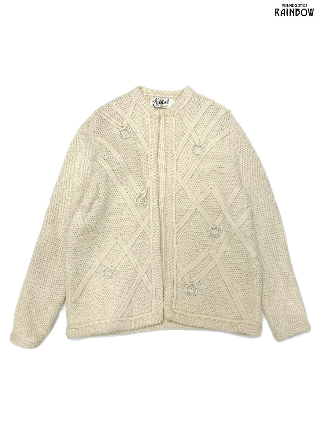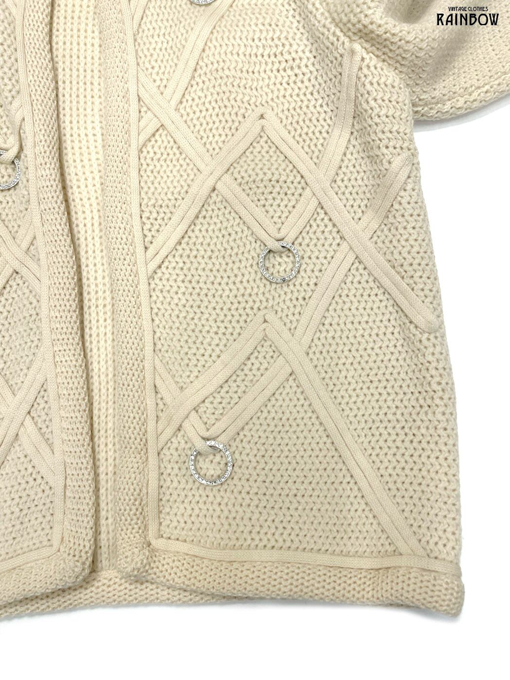 #ニット #ニットアウター #ロングスリーブ #ベージュ #無地 #ビジュー #前開き #ナチュラル #ウール #ピュアウール #ニットアウター