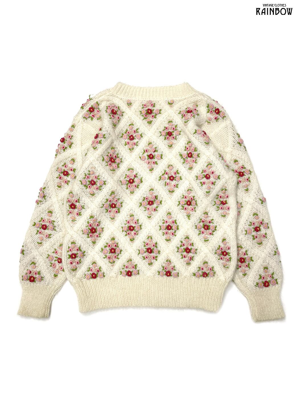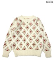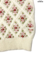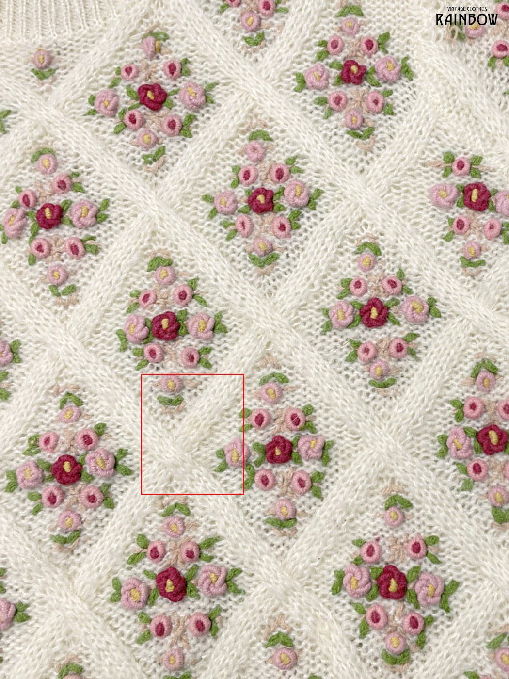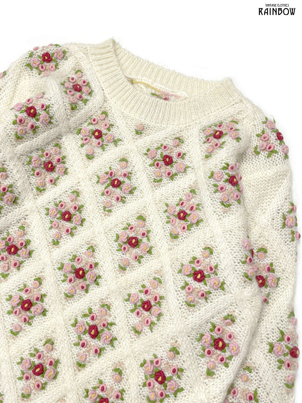 #ニット #セーター #ロングスリーブ #ピンク #生成り #花柄 #刺繍 #ガーリー #ニット地 #刺繍ニット