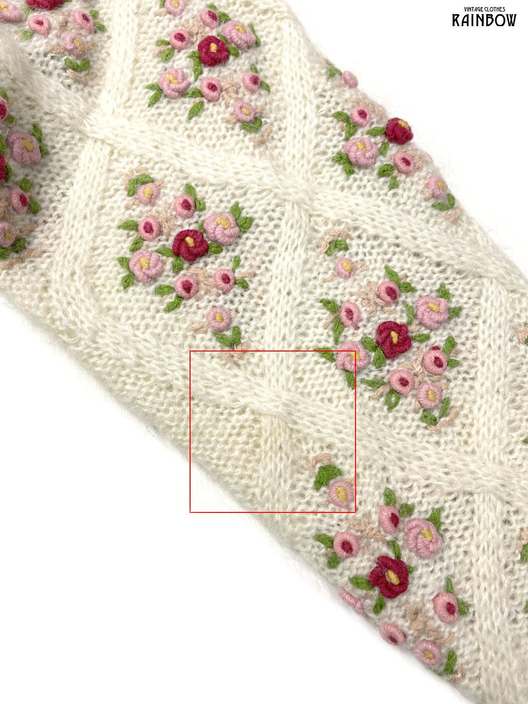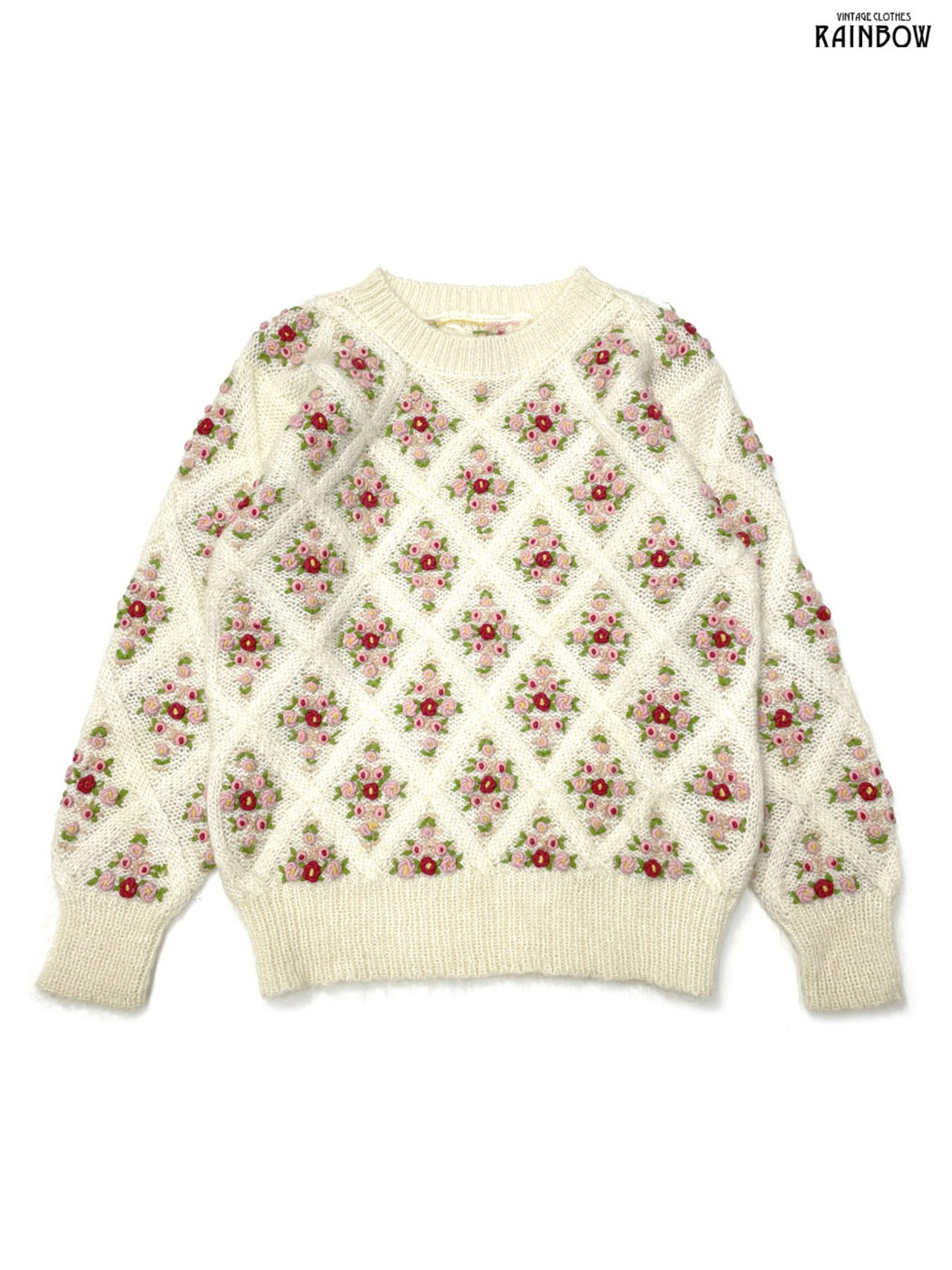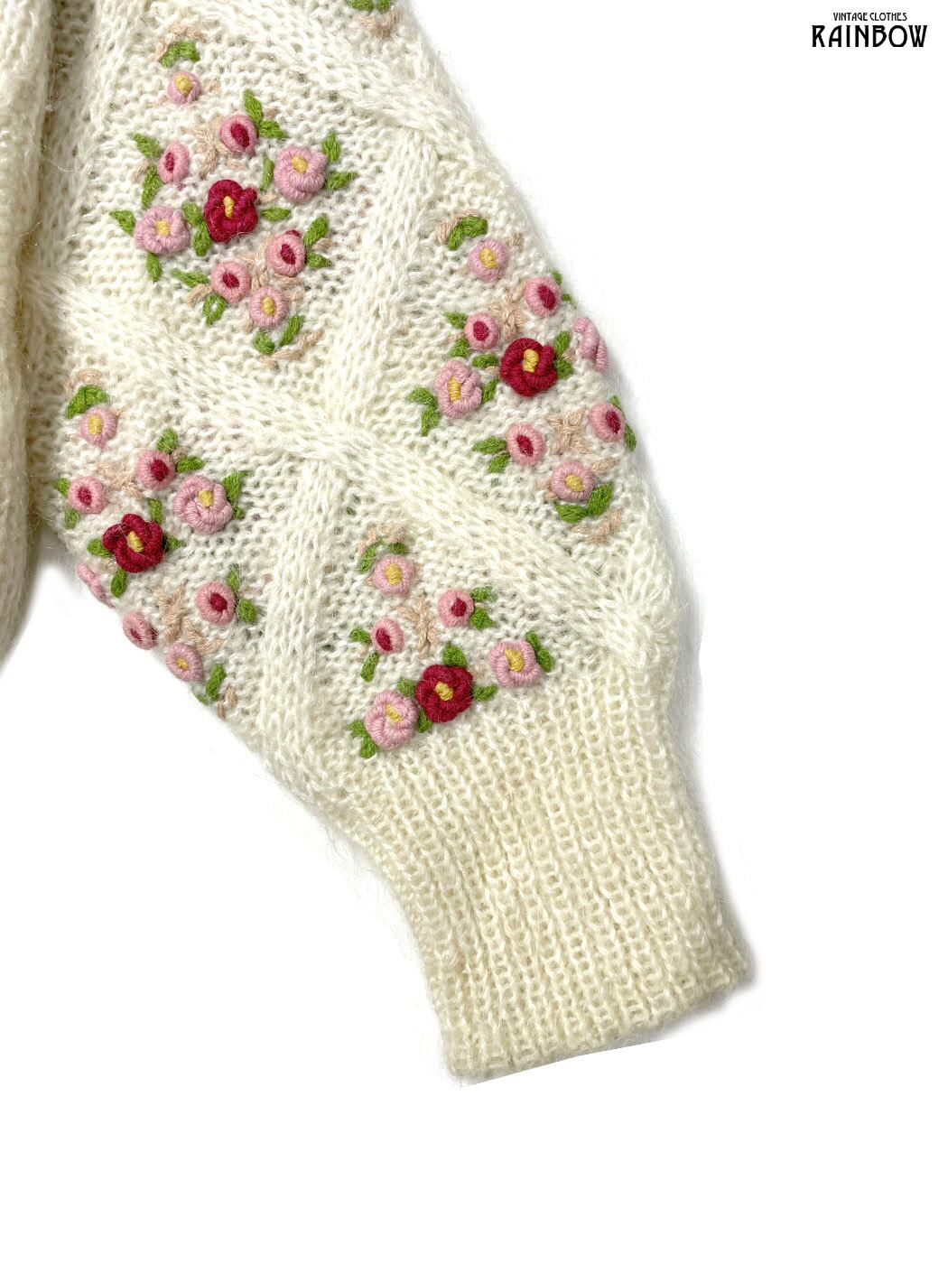 #ニット #セーター #ロングスリーブ #ピンク #生成り #花柄 #刺繍 #ガーリー #ニット地 #刺繍ニット