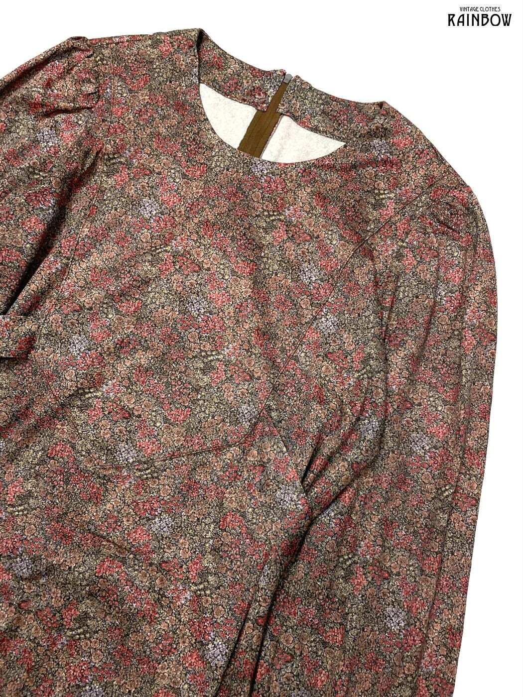 #ワンピース #ロングスリーブ #ロング丈 #ウエスト切り替え #茶 #花柄 #リボン #クラシック #長袖花柄ワンピース