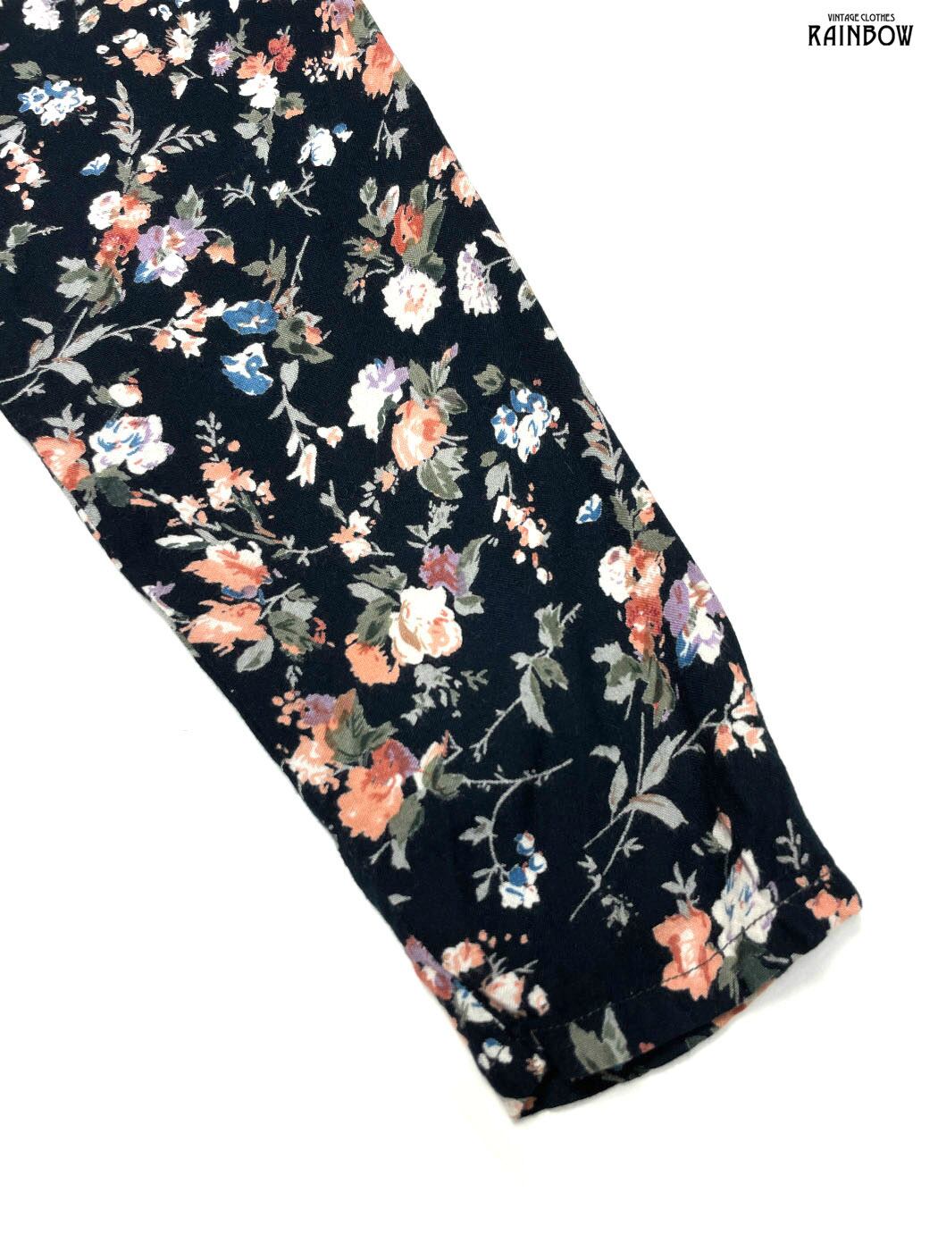 #ワンピース #ロングスリーブ #ロング丈 #黒 #花柄 #前開き #クラシック #レーヨン #長袖花柄ワンピース