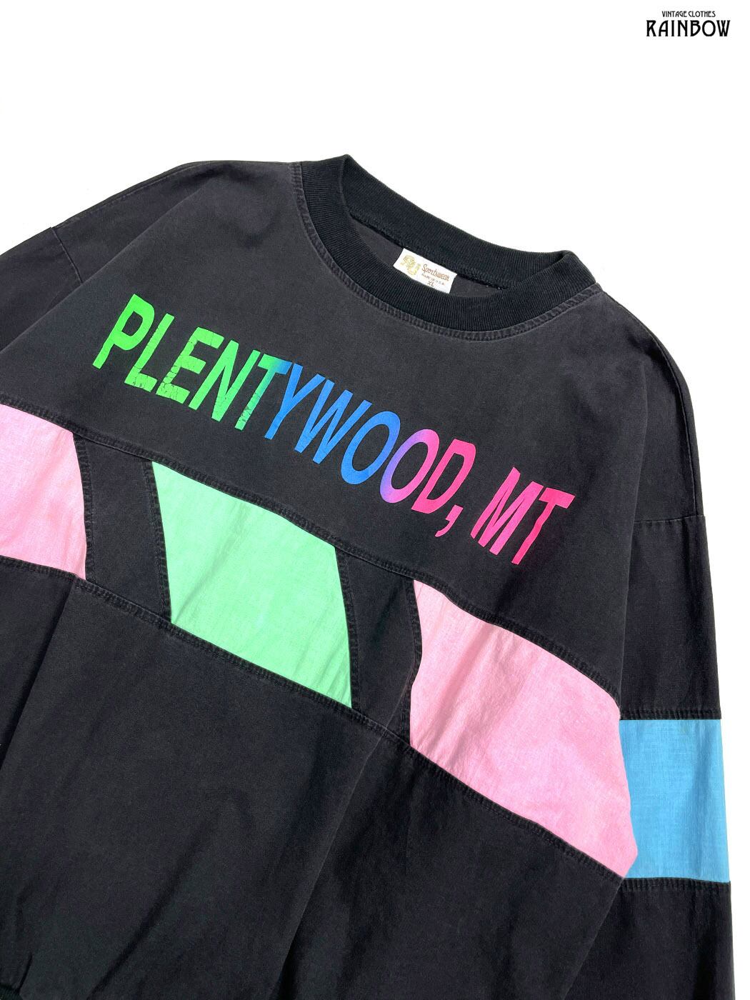 古着 PLENTYWOOD,MT アメリカ製 ロゴ コットン100% 長袖 スウェット トレーナー 黒 (ttu2501123)