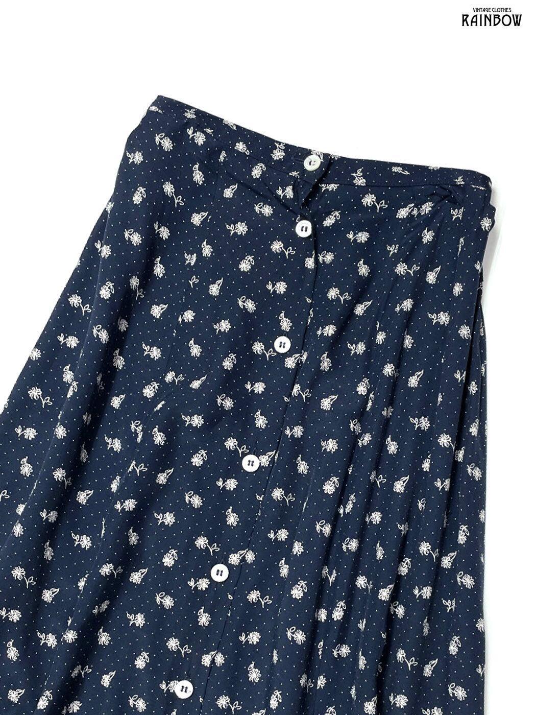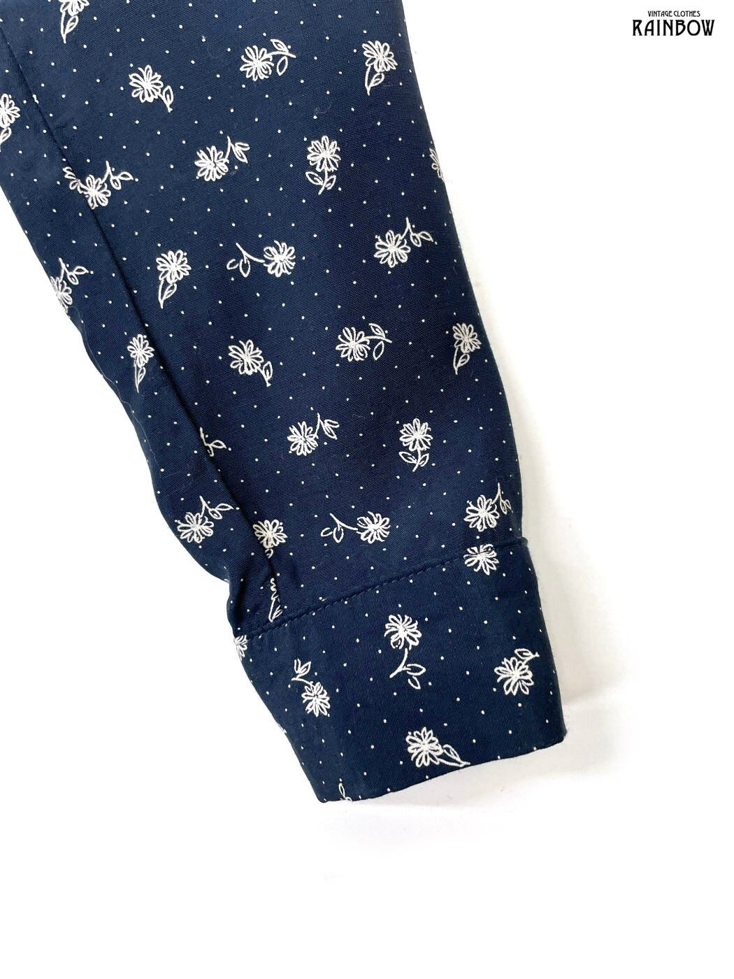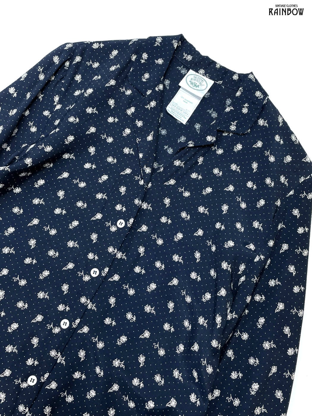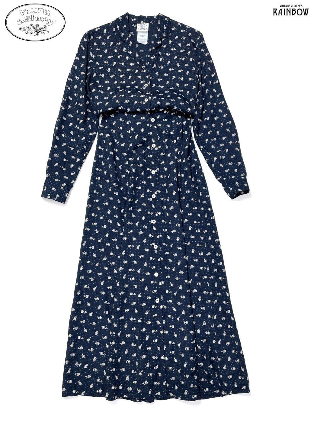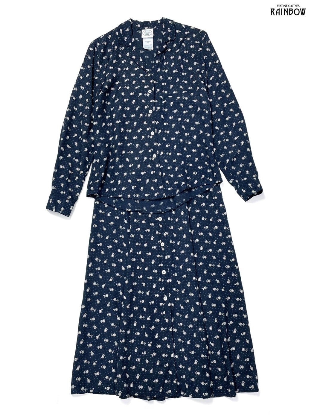 #ワンピース #セットアップ #ロングスリーブ #ロング丈 #ゴムウエスト #紺 #花柄 #イギリス製 #前開き #レーヨン #セットアップ