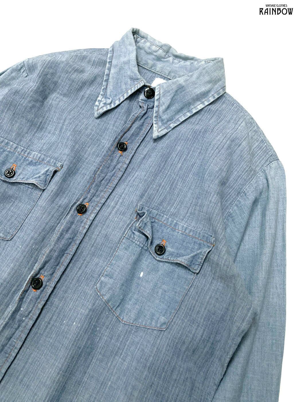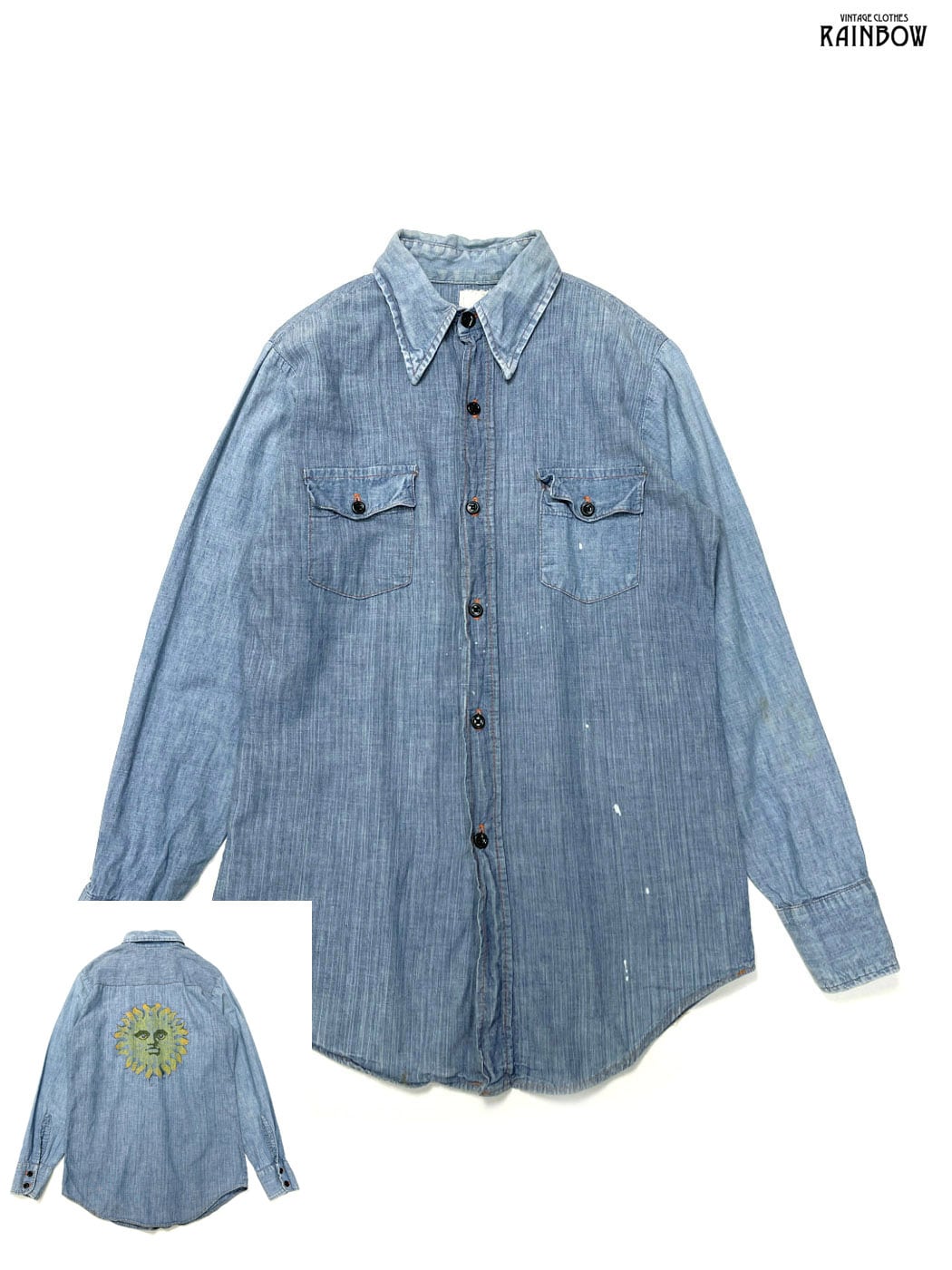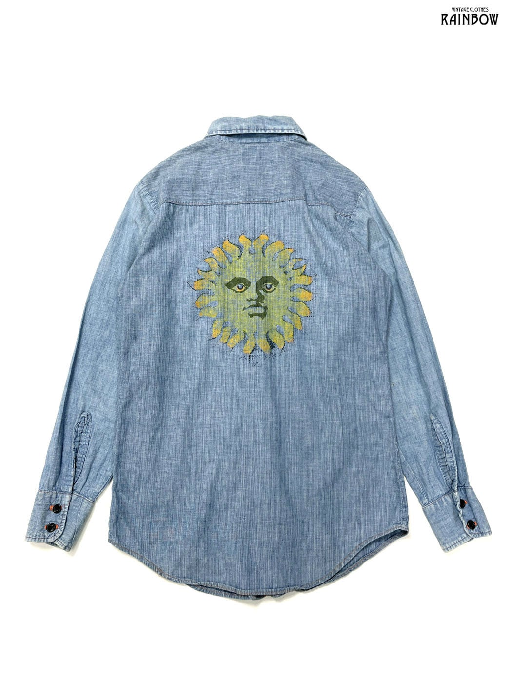 古着 太陽 無地 バックプリント デニム 長袖 シャツ 青 (ttu2501158)