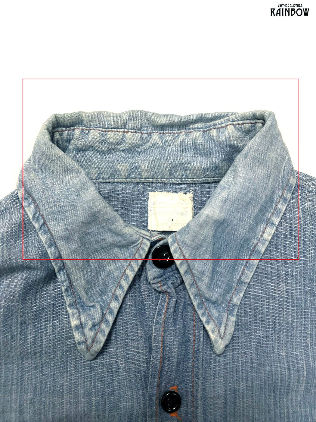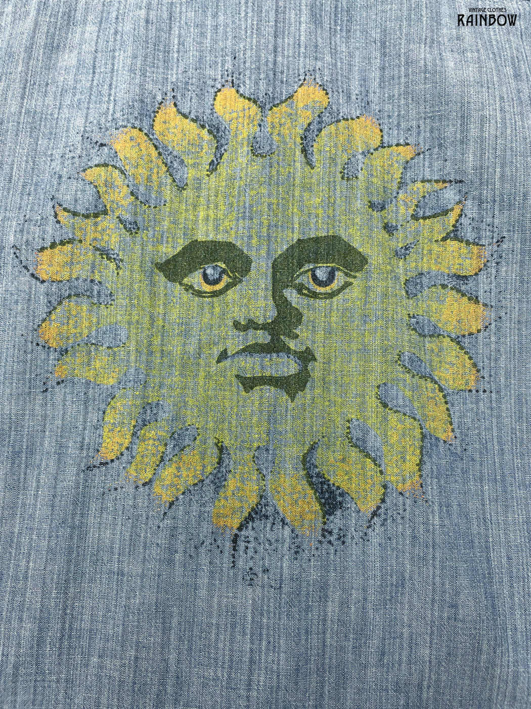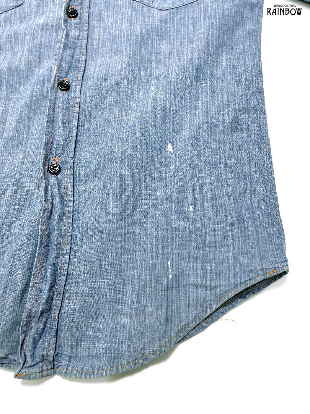 古着 太陽 無地 バックプリント デニム 長袖 シャツ 青 (ttu2501158)