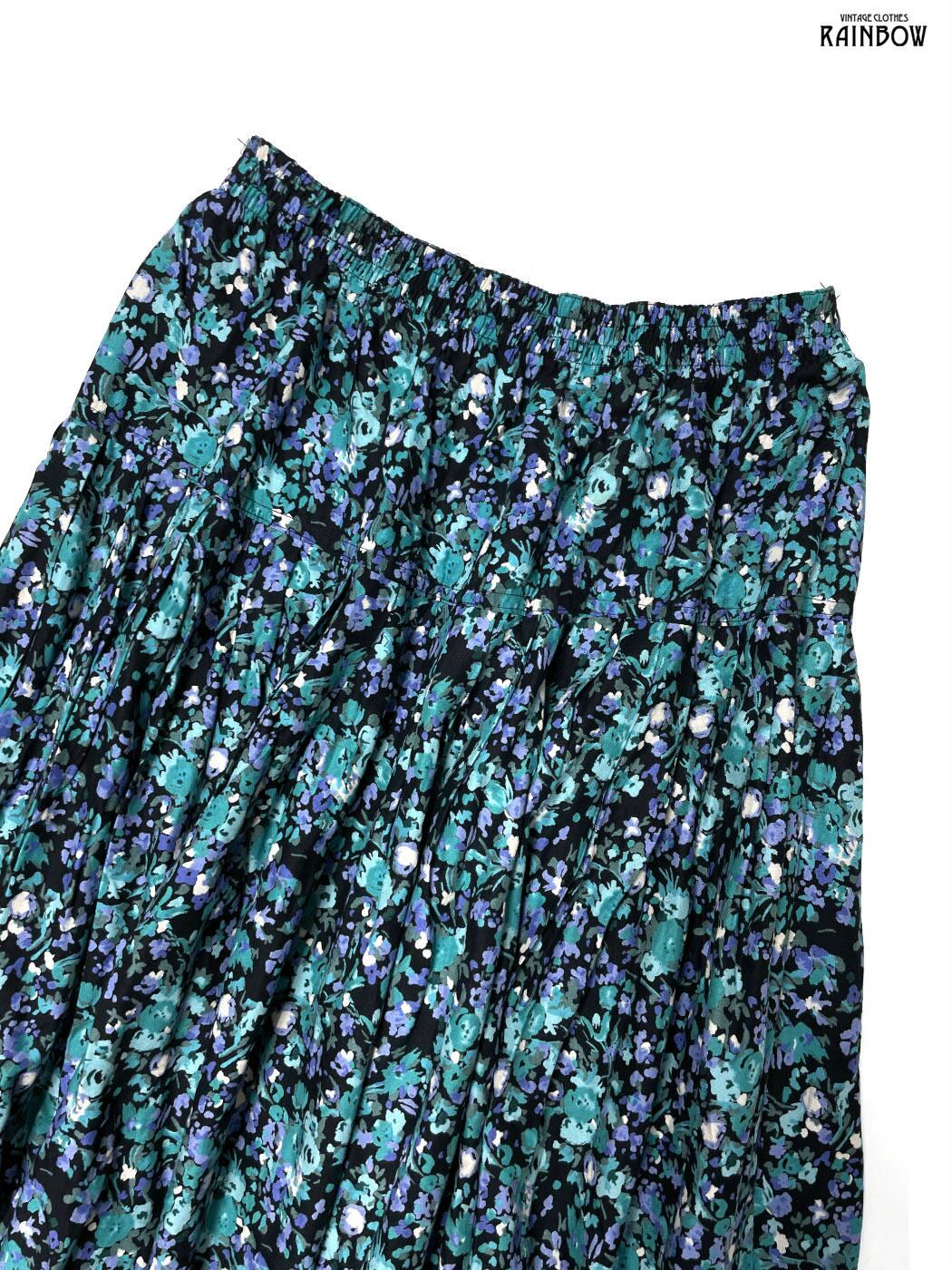 #スカート #ロング丈 #ゴムウエスト #黒 #青 #緑 #花柄 #クラシック #レーヨン #花柄スカート