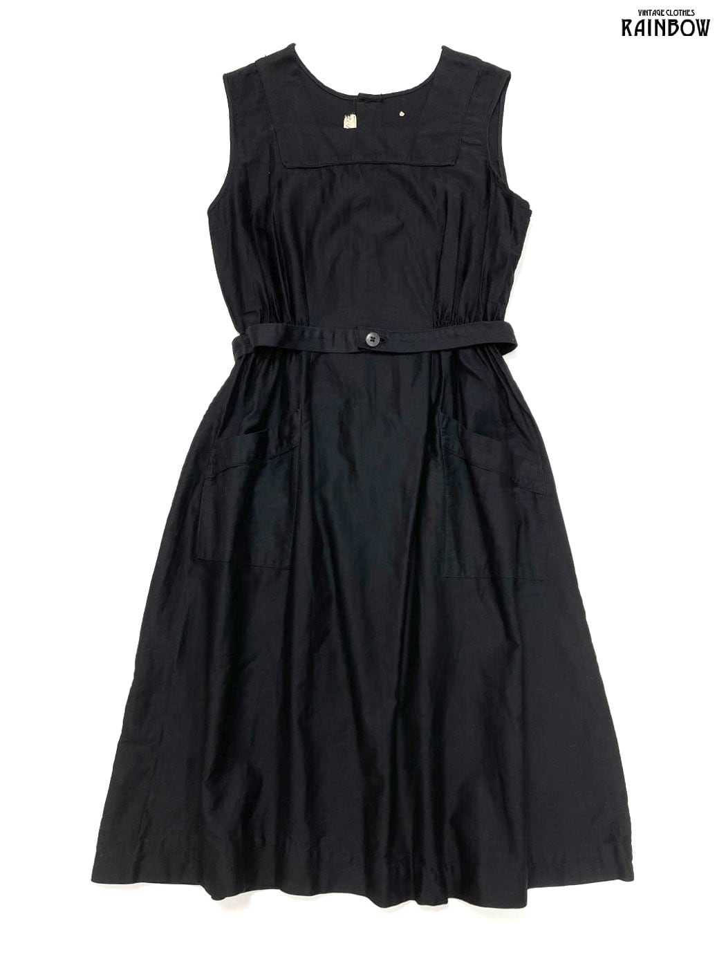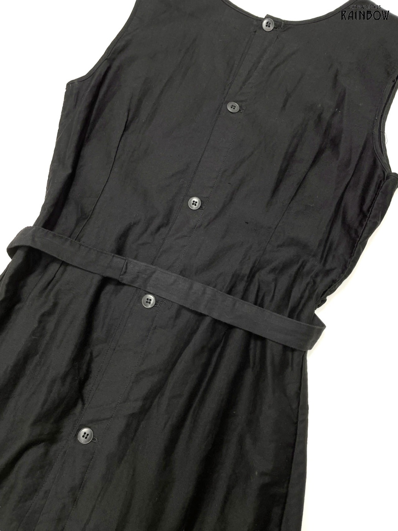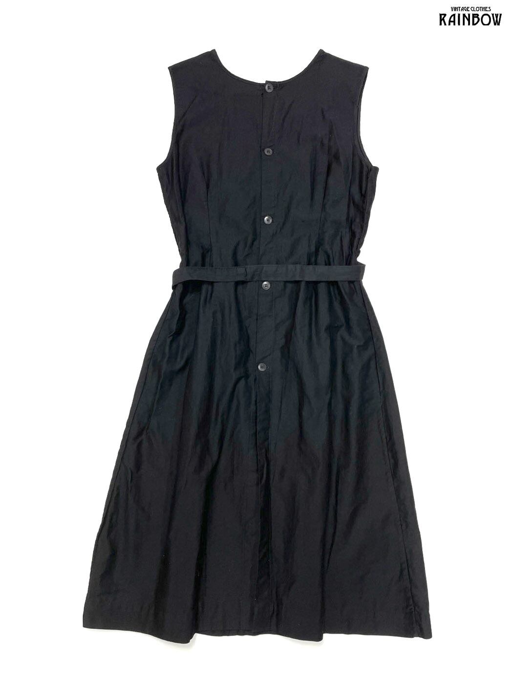 古着 Simone ベルト付き 無地 コットン ロング丈 ノースリーブ ワンピース 黒 (otu2502069)