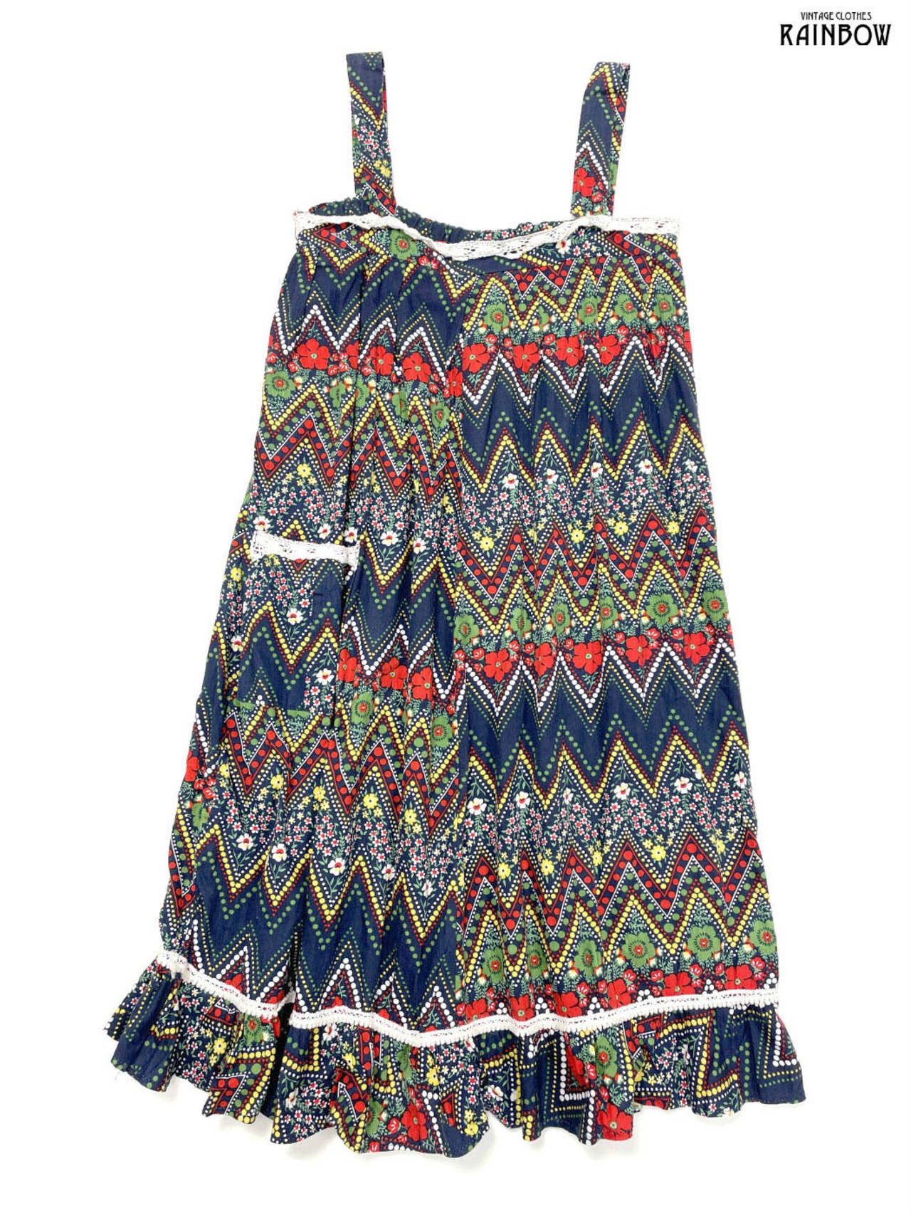 #ワンピース #キャミソール #膝丈 #フレア #ティアード #紺 #花柄 #総柄 #レース #クラシック #コットン #ノースリーブ花柄ワンピース