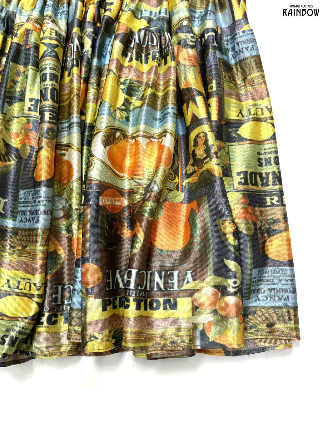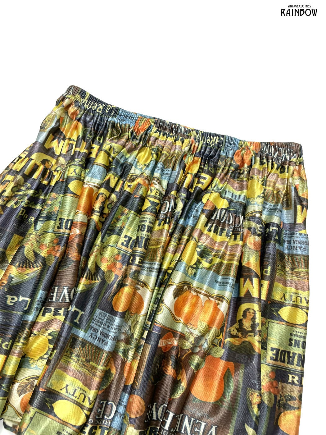 古着 文字 フルーツ 総柄 ミニ丈 スカート 黄 グレー (btu2502028)