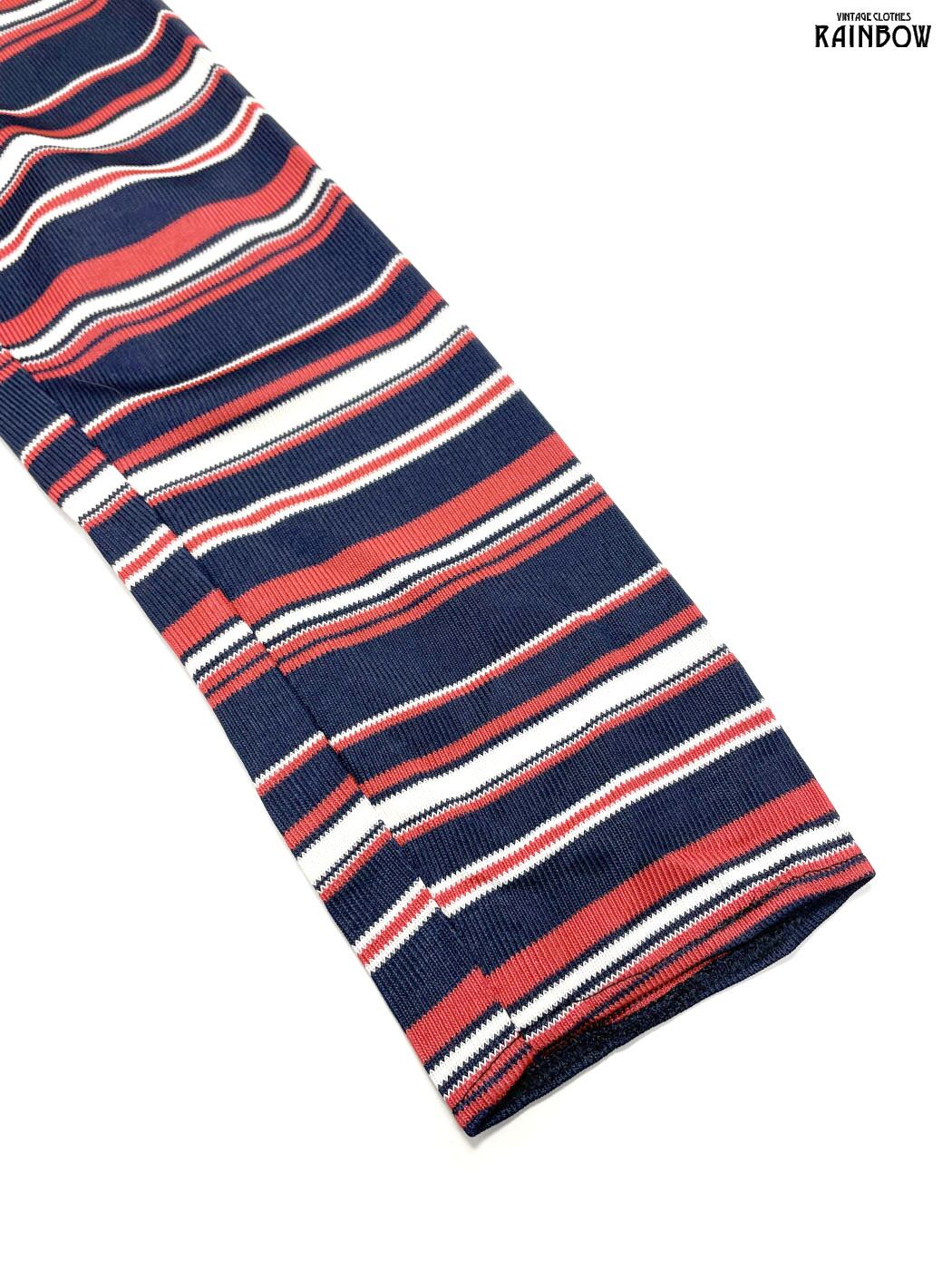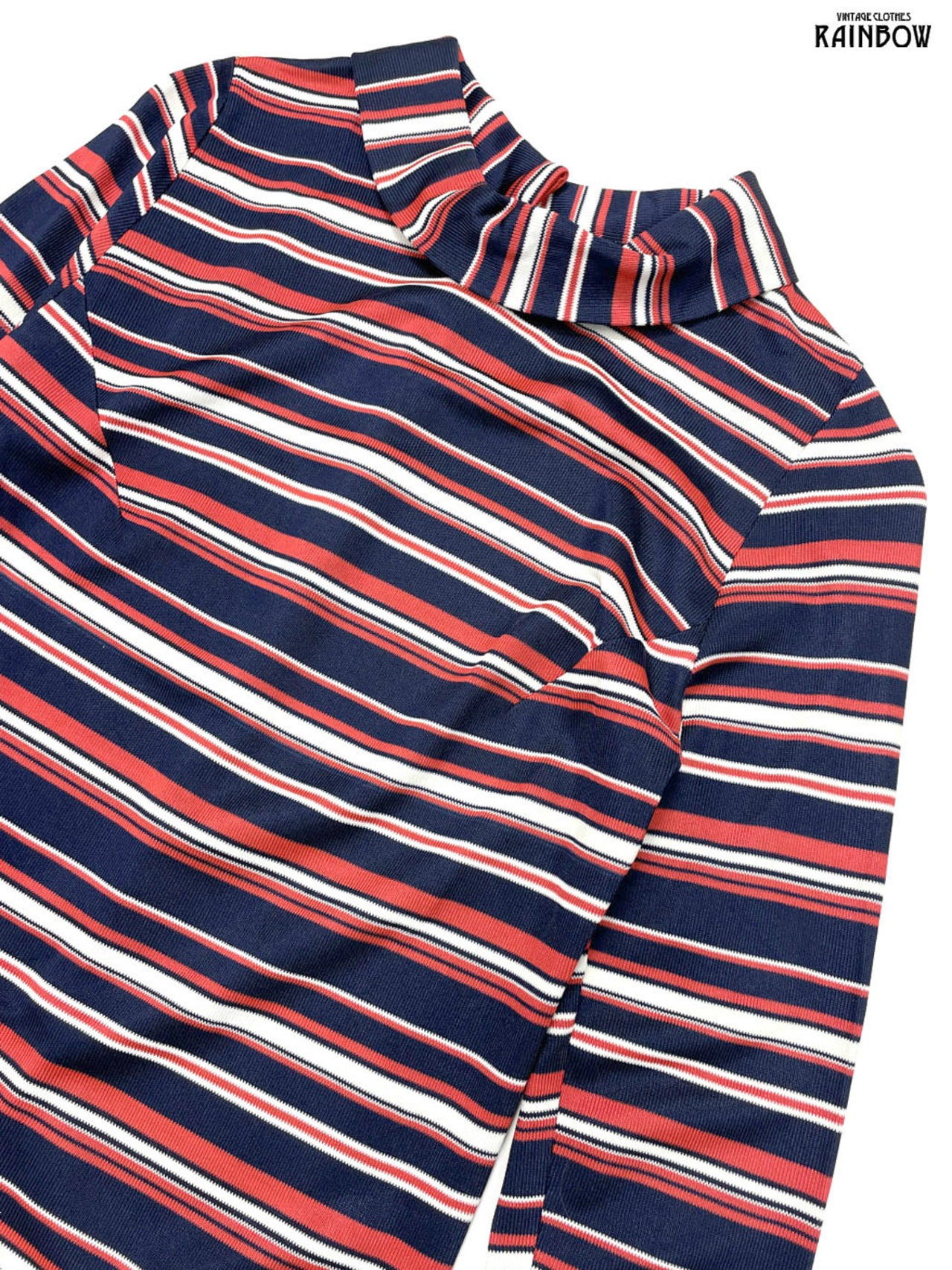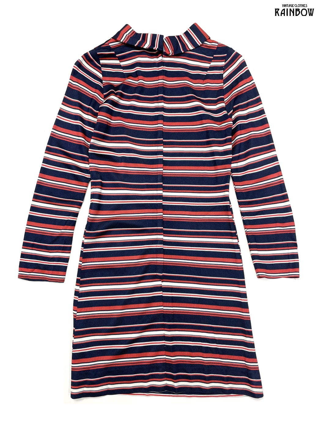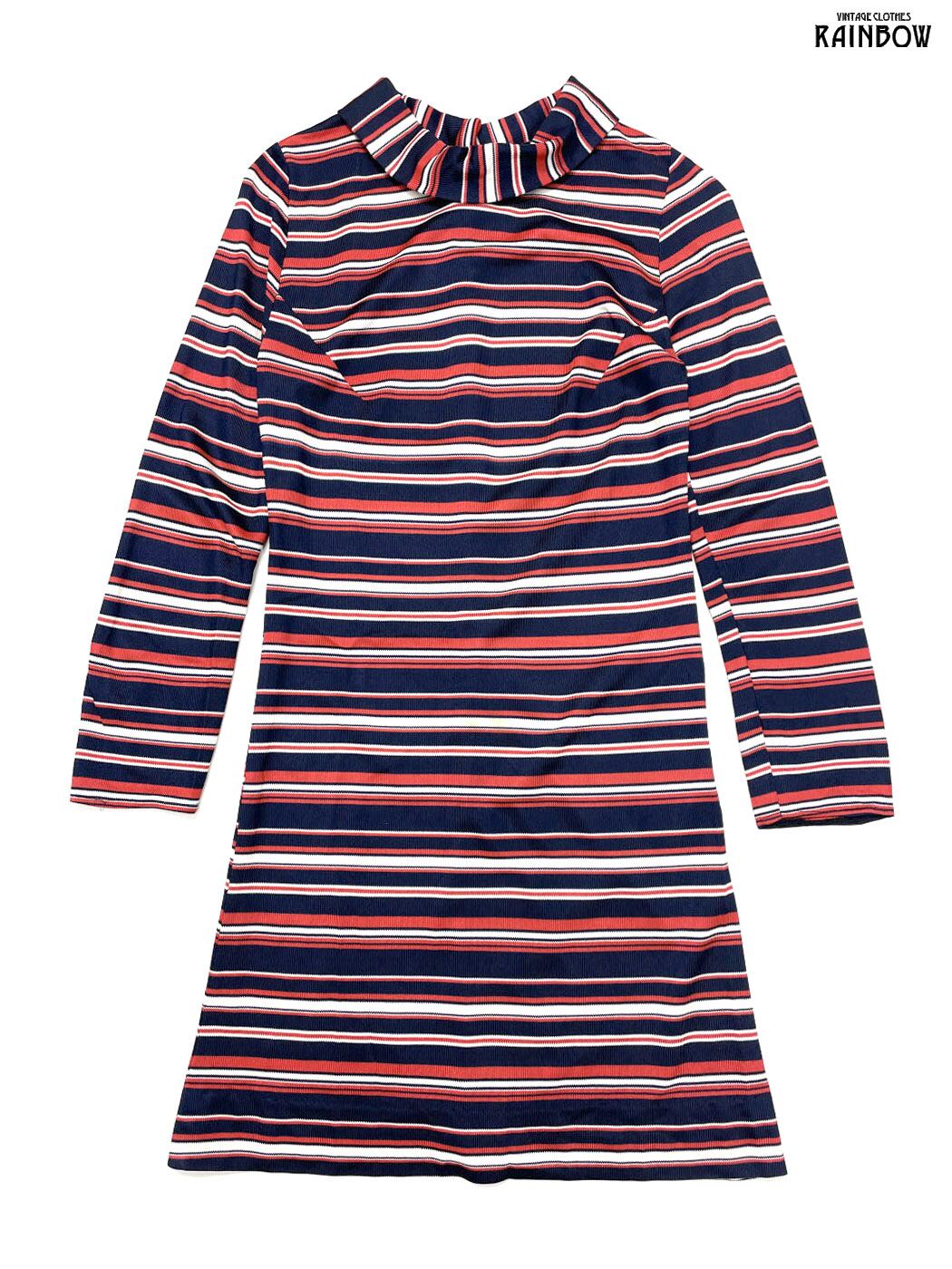 #ワンピース #ロングスリーブ #膝丈 #ストレート #タイト #オレンジ #紺 #ボーダー柄 #ハイネック #クラシック #長袖ボーダー柄ワンピース